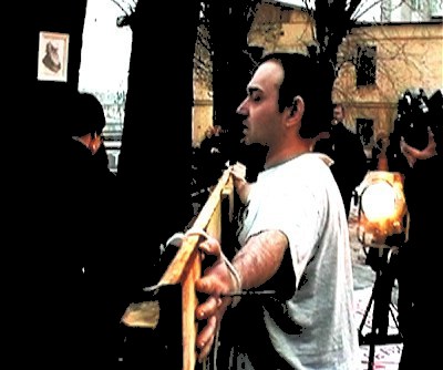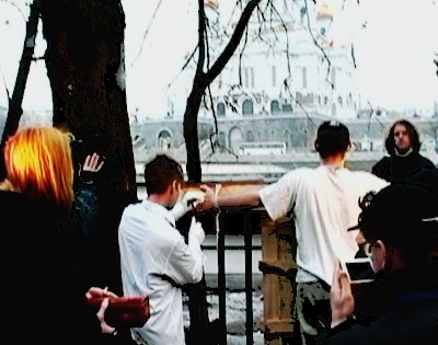 Режиссёр Олег Мавроматти распял себя прямо напротив храма Христа Спасителя