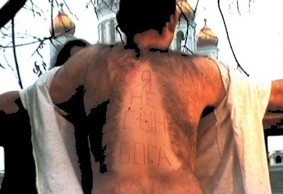 Скандально известный художник-акционист Олег Мавроматти, два последних года занимавшийся исключительно кино, в новом своём проекте объединяет две этих ипостаси. Серия радикальных и подчас кровавых перформансов одновременно снимается на 35 мм и войдёт в качестве эпизодов в будущий фильма Олега. Мавроматти продолжает работать с болью как с эстетической категорией и критерием подлинности и оригинальности. Глубину искусства он трактует в физиологическом смысле. В первой акции серии, состоявшейся на Берсеневской набережной (там, откуда открывается наилучший вид на Храм Христа Спасителя), руки художника прибивали настоящими гвоздями к некоему подобию креста. в таком положении Мавроматти находился достаточно долго - пока боль не стала окончательно нестерпимой. От библейских параллелей должна была уберечь надпись, процарапанная бритвой на обнажённой спине художника: "Я не сын божий".